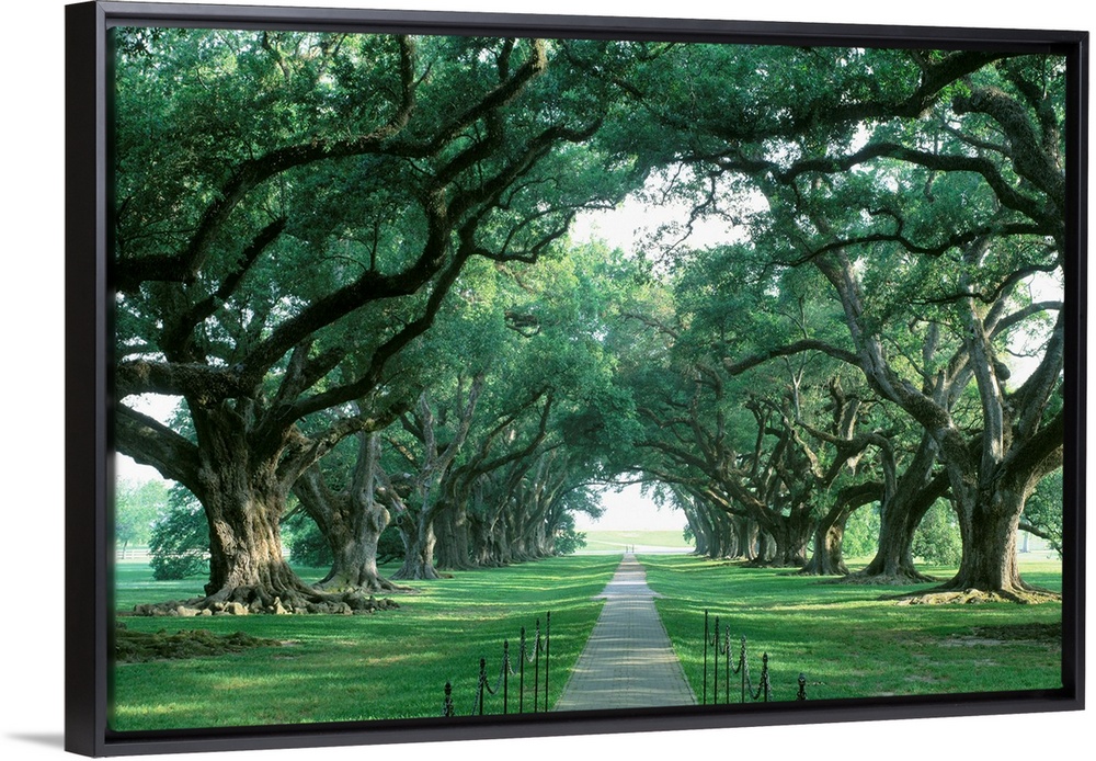 <p>USA, Louisiana, New Orleans, brick path through alley of oak trees</p>