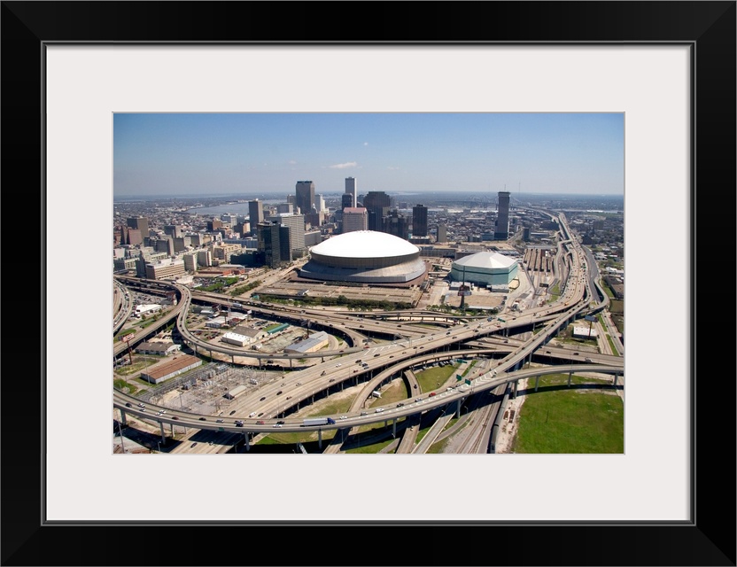 <p>Interstate 10 and US 90 freeway interchange in New Orleans, Louisiana...interstate, freeway, interstate 10, us 90, highway, interchange, road, transportation, new orleans, louisiana, city, superdome, sports arena, super dome</p>