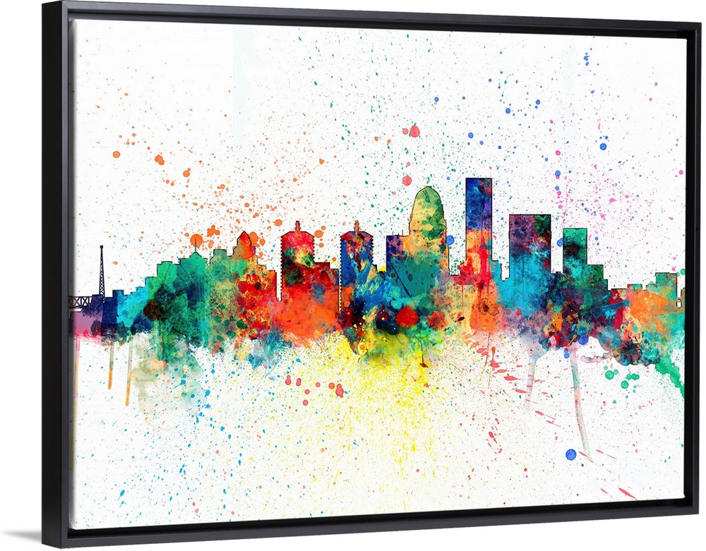 <p>Wild and vibrant paint splatter silhouette of the Louisville skyline.</p>