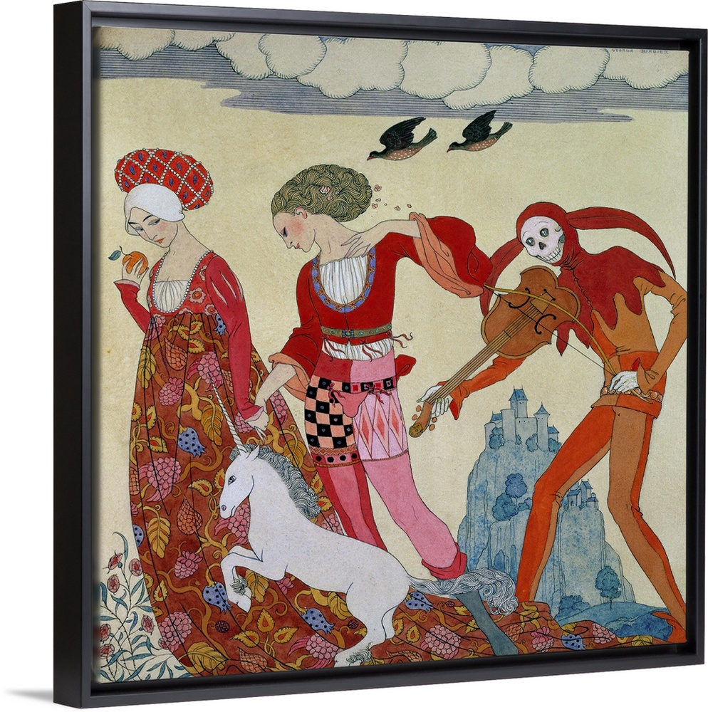 Art George Barbier Classic Art Classic Art by Period Medieval Art Modern Art Art Deco Classic Art by Subject Figurative Fantasy Unicorns Illustrations Painting People Figurative Red Wall Art Staff Picks Staff Picks - Kathryn
