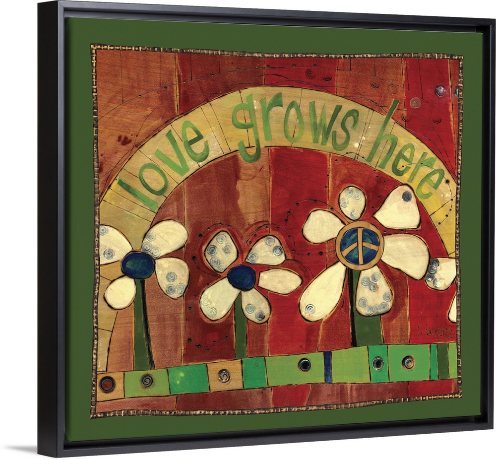 <p>Flowers in red background with saying</p>