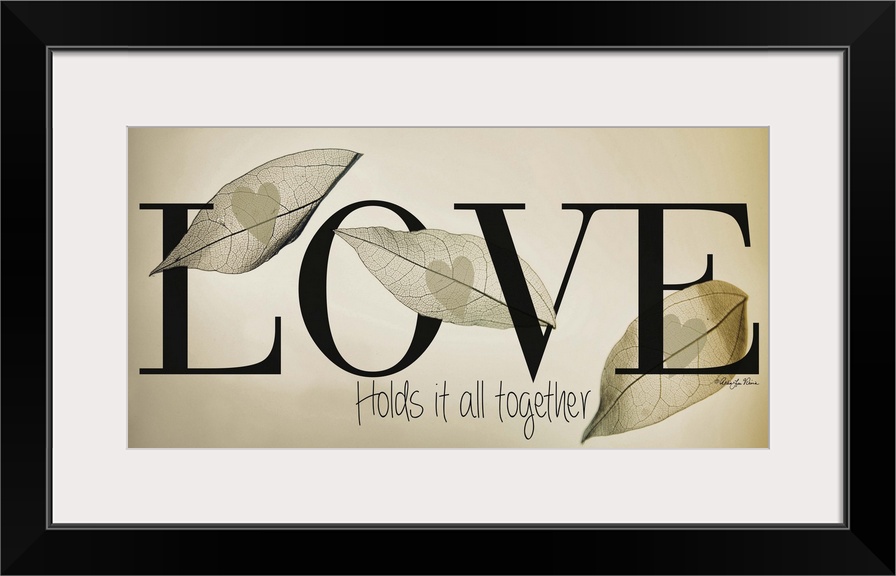 <p>Romantic typography art with a leaf design on neutral colors.</p>