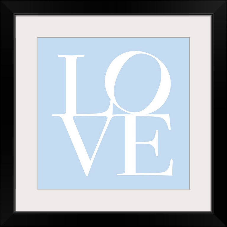<p>LOVE, typography text art print and canvas print, with the word LOVE written against a baby blue background. Chic, contemporary, modern and stylish.</p>
