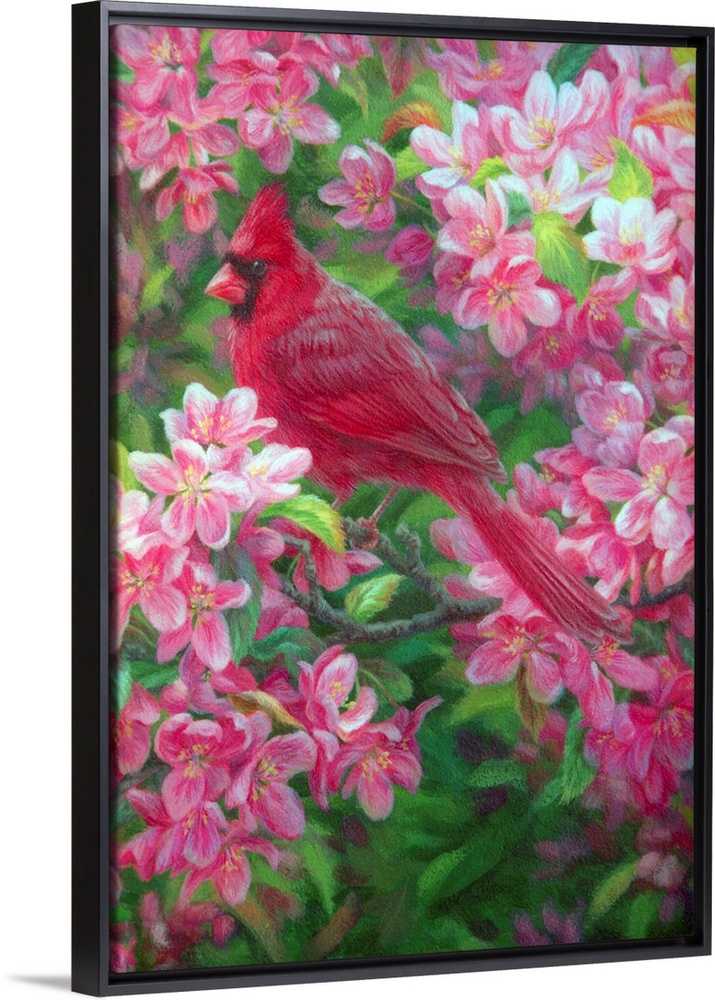 Art Traditional Contemporary Art Plants and Flowers Wildlife Florals Painting Pink Wall Art Wildlife Bird
