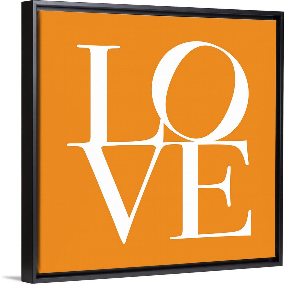 <p>Big contemporary art shows a single word for the intense feeling of deep affection a couple shares that has been split into a couple lines of two letters each. Artist slightly rotates the letter "O" on the first line and places the text against a solid color background.</p>
