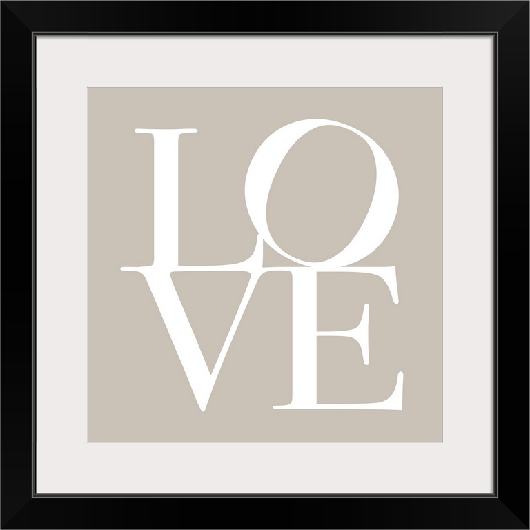 <p>LOVE, typography text art print and canvas print, with the word LOVE written against a taupe / beige background. Chic, contemporary, modern and stylish.</p>