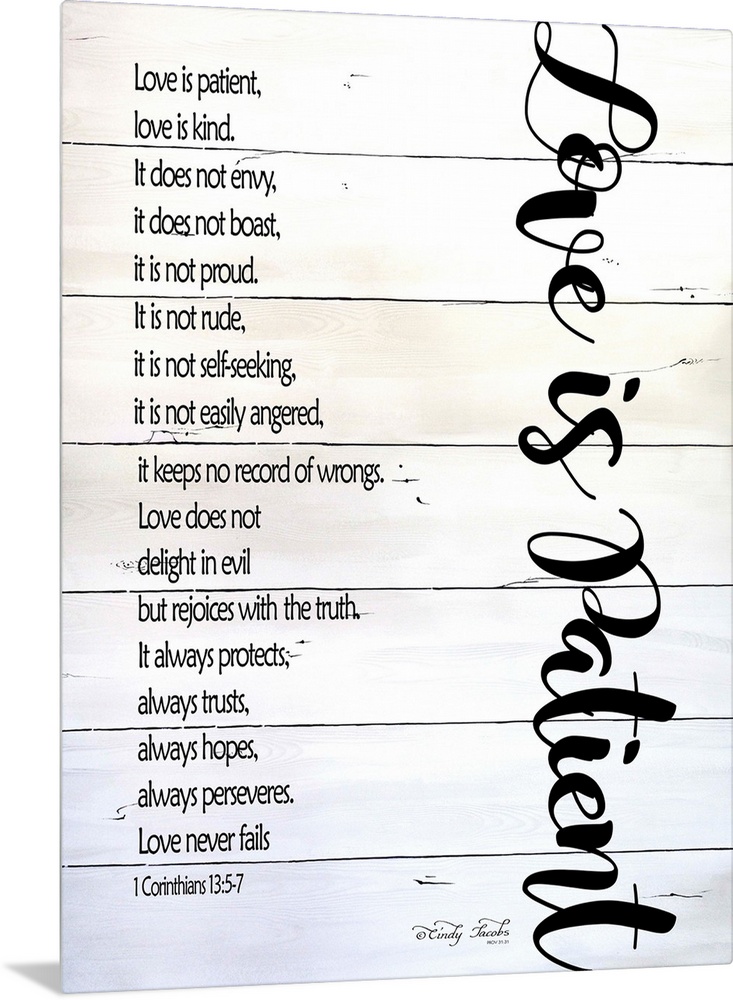 <p>1 Corinthians 13 typography art on a white board background.</p>
