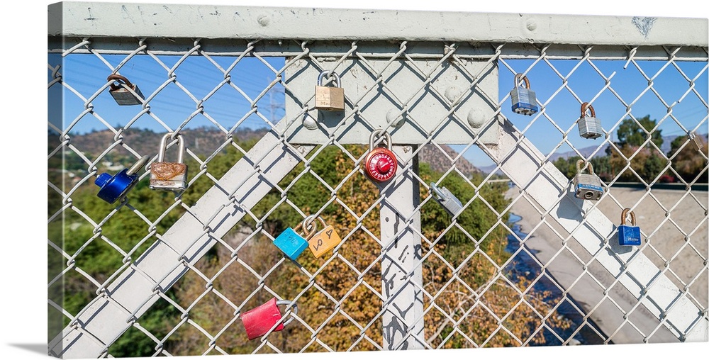 <p>Love locks on a fence, atwater village, los angeles river, los angeles county, southern california, california, USA.</p>