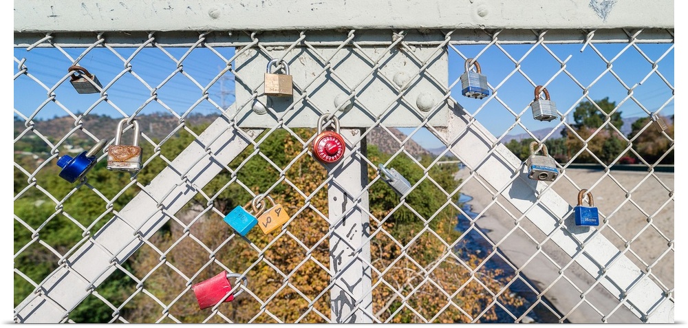 <p>Love locks on a fence, atwater village, los angeles river, los angeles county, southern california, california, USA.</p>