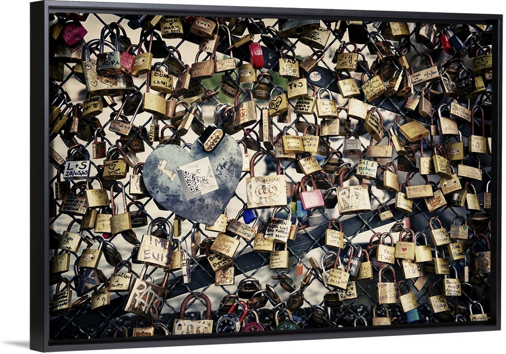 <p>Collection of locks left by couples on the Pont des Arts in Paris, France.</p>