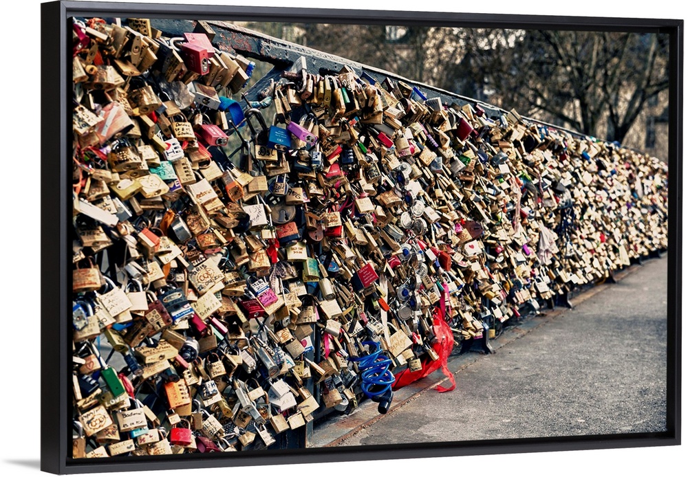 <p>Collection of locks left by couples on the Pont des Arts in Paris, France.</p>