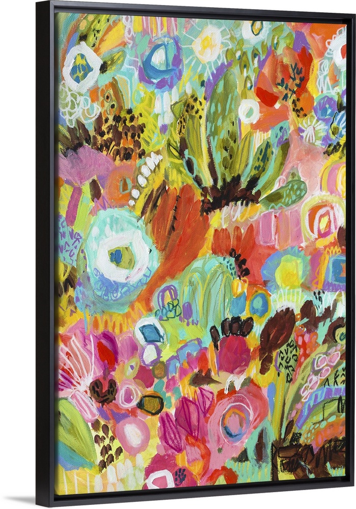 <p>Contemporary art print of an abstract garden filled with colorful flowers.</p>
