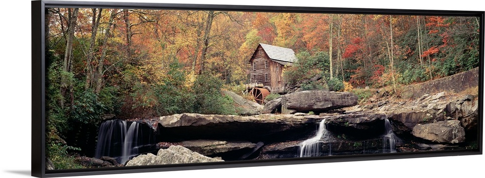 <p>A water mill above a waterfall in Babcock State Park, West Virginia in the fall.</p>