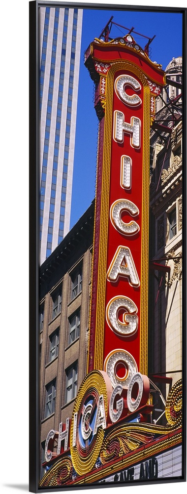 <p>Large vertical panoramic photograph of a movie theater sign in Chicago, Illinois (IL).</p>