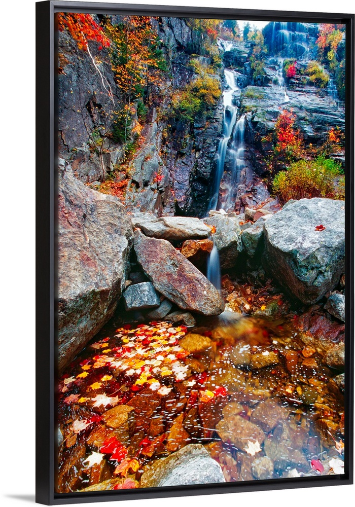 <p>Low Angle View of a Waterfall with Colorful Fall Leaves, Silver Cascade, White Mountain National Forest, New Hampshire</p>