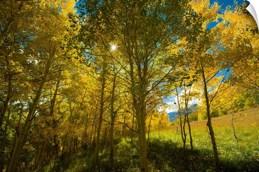 <p>Low angle view of autumn trees, Maroon Bells, Maroon Creek Valley, Aspen, Pitkin County, Colorado, USA</p>