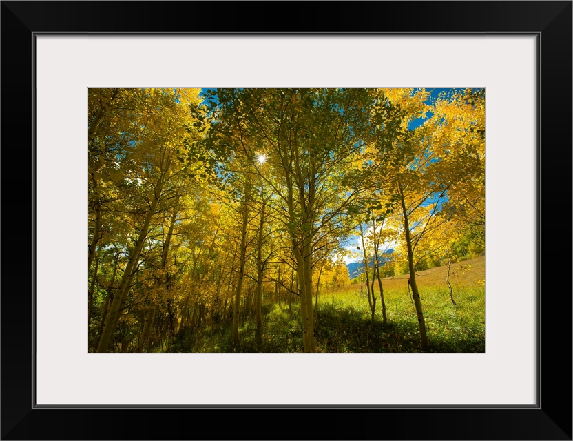 <p>Low angle view of autumn trees, Maroon Bells, Maroon Creek Valley, Aspen, Pitkin County, Colorado, USA</p>