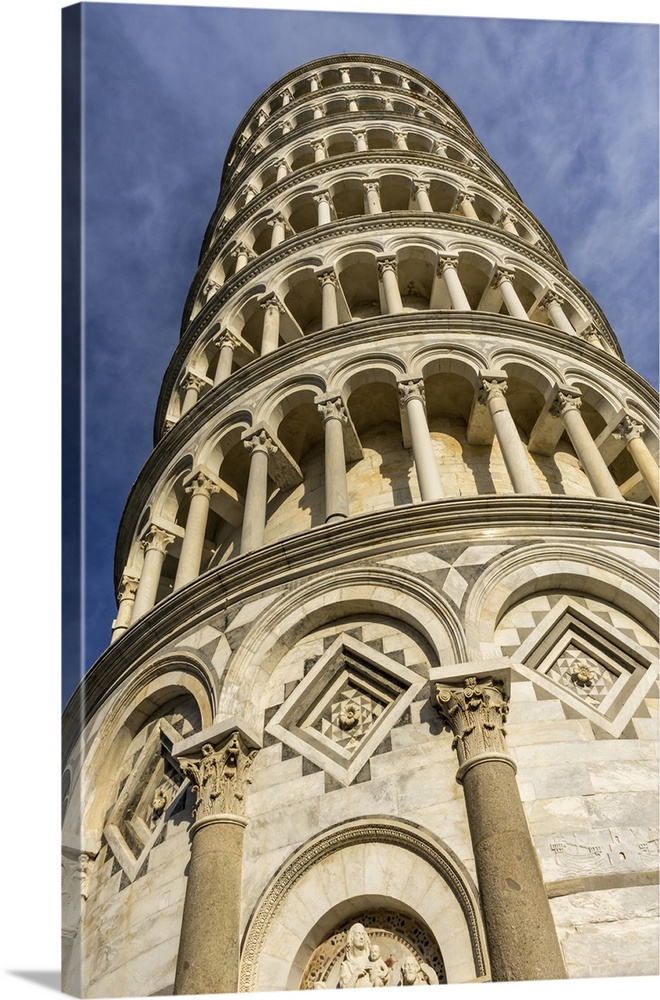 <p>Low-angle view of Leaning Tower of Pisa, Tuscany, Italy. Completed in 1100's.</p>