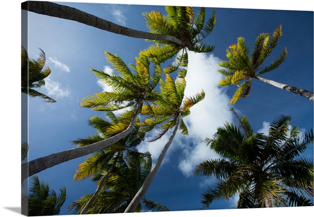 <p>Low angle view of palm trees, Bora Bora, Society Islands, French Polynesia</p>