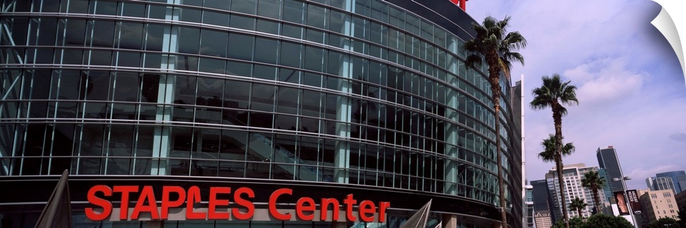 <p>Low angle view of a multi-purpose sports arena, Staples Center, City Of Los Angeles, Los Angeles County, California, USA</p>