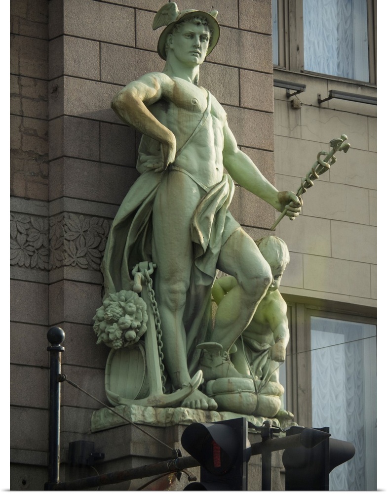 <p>Low angle view of statue on a store, Nevsky Prospect, St. Petersburg, Russia</p>