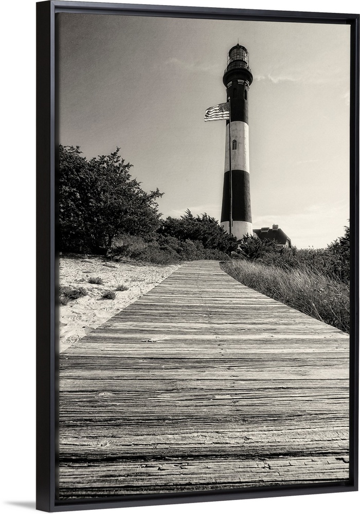 <p>Low Angle View of the Fire Island Lighthouse with a Boardwalk, Long Island, New York</p>