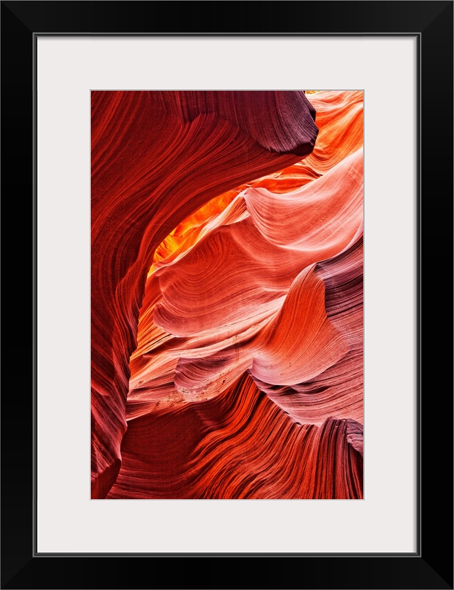 <p>This picture is taken inside of a canyon where the rock has formed into a beautiful curved design.</p>