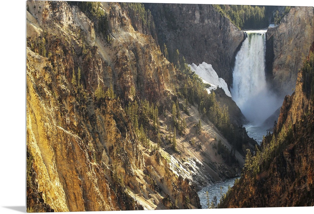 <p>Yellowstone isn't just wildlife and geysers! There's a deep river gorge called the Grand Canyon of the Yellowstone with sharp drops and steep cliffs. The canyon walls are mostly composed of Rhyolite, which give them the light and dark yellow coloration. This was taken in late afternoon as the sun filtered through some clouds.</p>