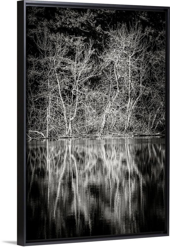<p>A black and white photograph of the lowland winter forest near Round Lake at Tiger Mountain State Forest near Issaquah, Washington.</p>