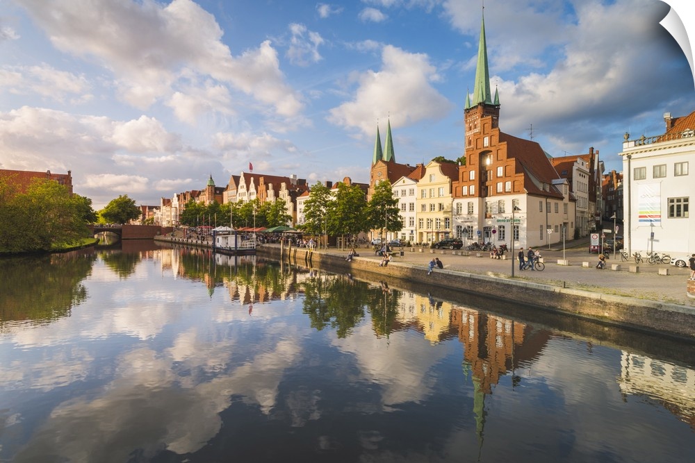 <p>Lubeck, Baltic coast, Schleswig-Holstein, Germany. Old town's houses along the Trave river's waterfront.</p>