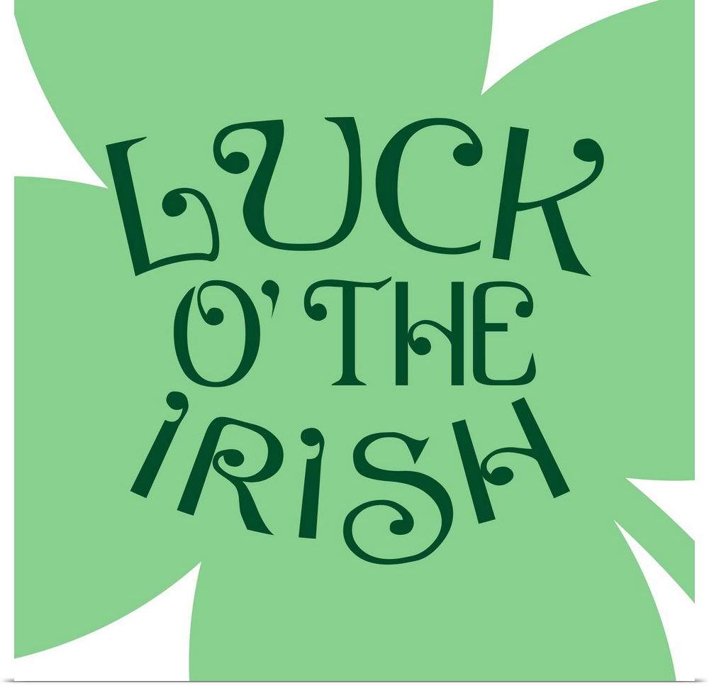 <p>"Luck of the Irish" written on top of a large four-leaf clover.</p>