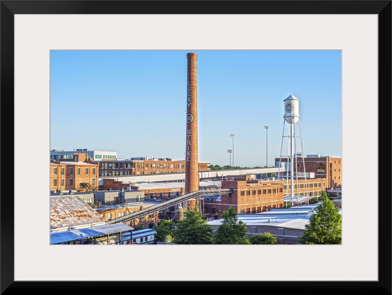 <p>Lucky Strike Water Tower and Smokestack over the brick factory building, American Tobacco Historic District, Durham, North Carolina.</p>