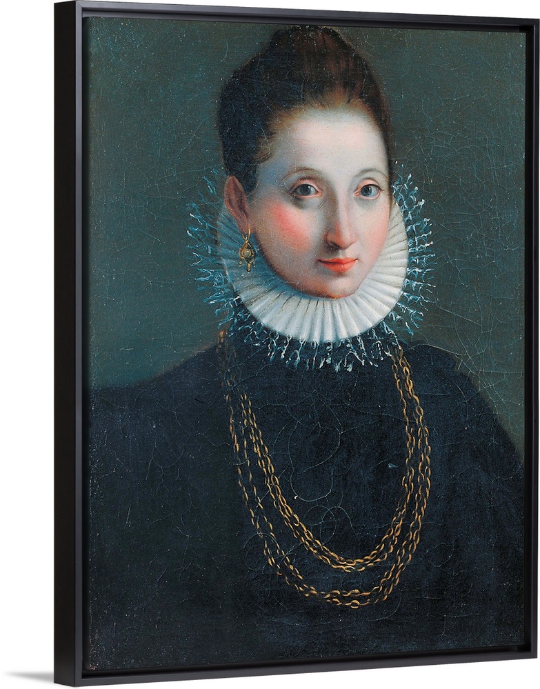 <p>Portrait of a Woman (probably Lucrezia Borgia), by Anonymous artist, 1580 - 1599 about, 16th Century, oil on canvas, cm 56,5 x 42,5 - Italy, Marche, Pesaro Urbino, Urbino, Marche National Gallery, Inv. 121 DItaly. All. Woman pallor hair gathered blonde bl</p>