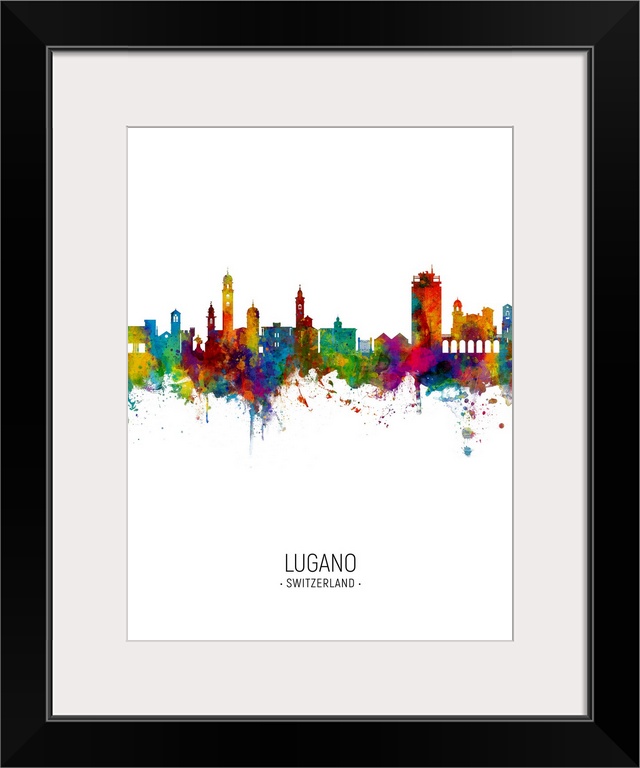 <p>Watercolor art print of the skyline of Lugano, Switzerland</p>