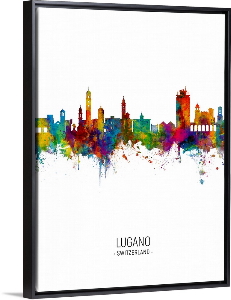 <p>Watercolor art print of the skyline of Lugano, Switzerland</p>