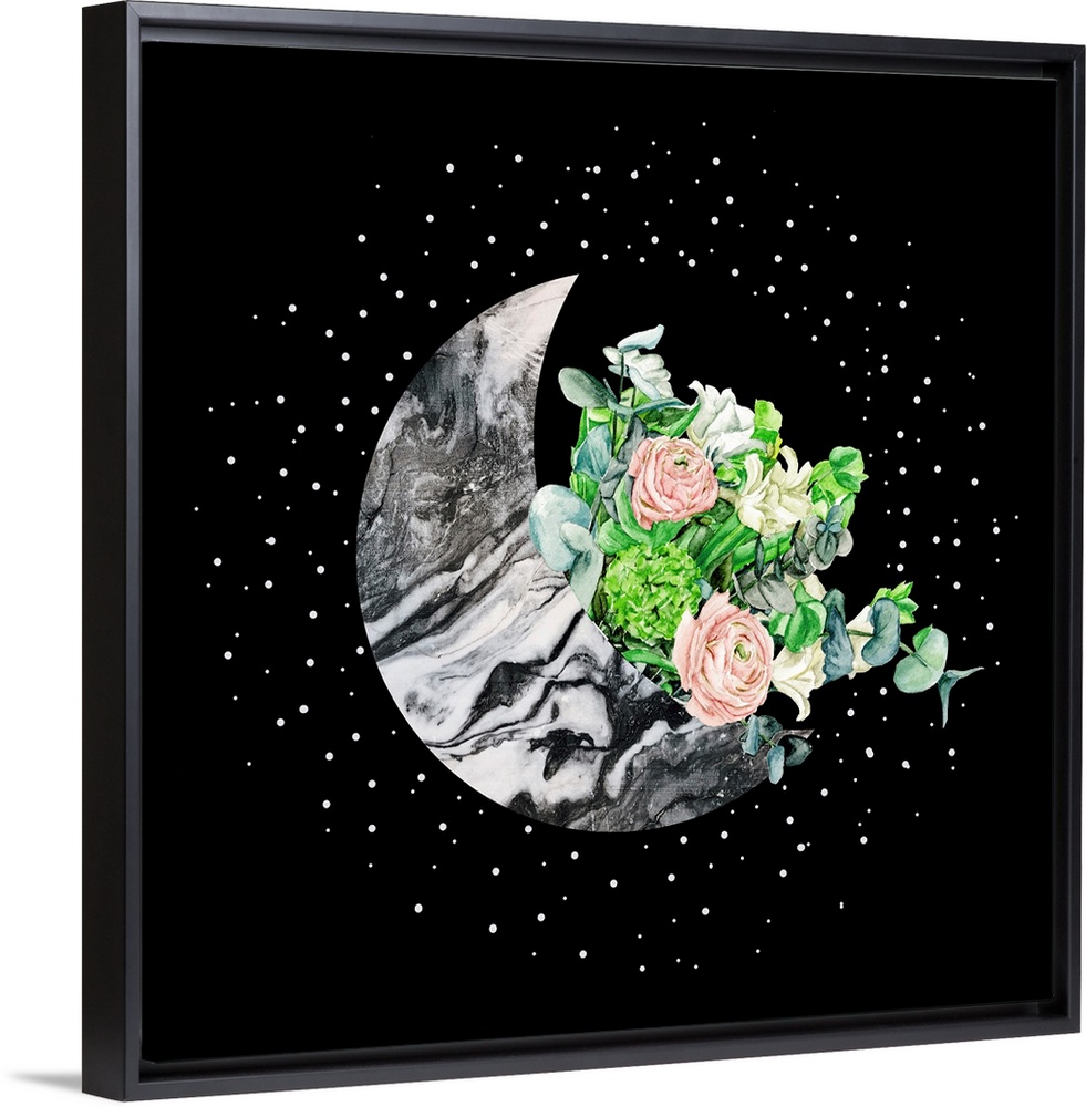 Art Children's Art Black and White Wall Art College Dorm Décor Boho Chic Decorative Art Florals Painting Space Moon Melissa Wang