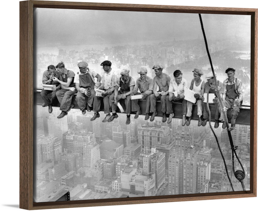 <p>While New York's thousands rush to crowded restaurants and congested lunch counters for their noon day lunch, these intrepid steel workers atop the 70 story RCA building in Rockefeller Center get all the air and freedom they want by lunching on a steel beam with a sheer drop of over 800 feet to the street level. The RCA building is the largest office building in terms of office space in the world. (original caption). Image taken 9/20/32; filed 9/29/32.</p>