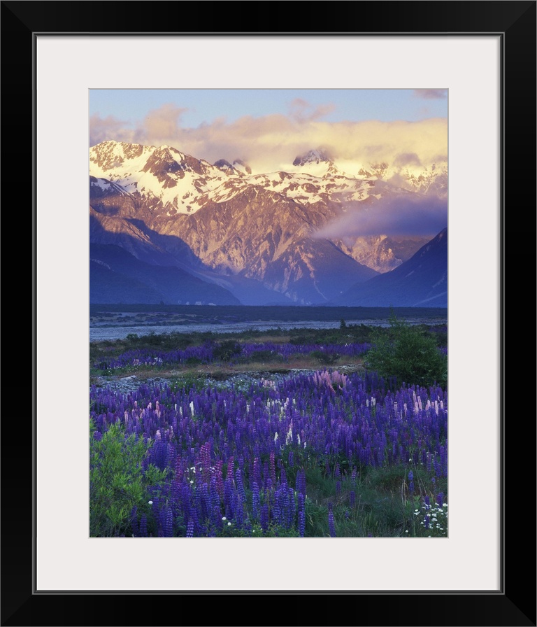 <p>New Zealand, South Island, Arthur's Pass National Park, Lupine and the Main Divide</p>