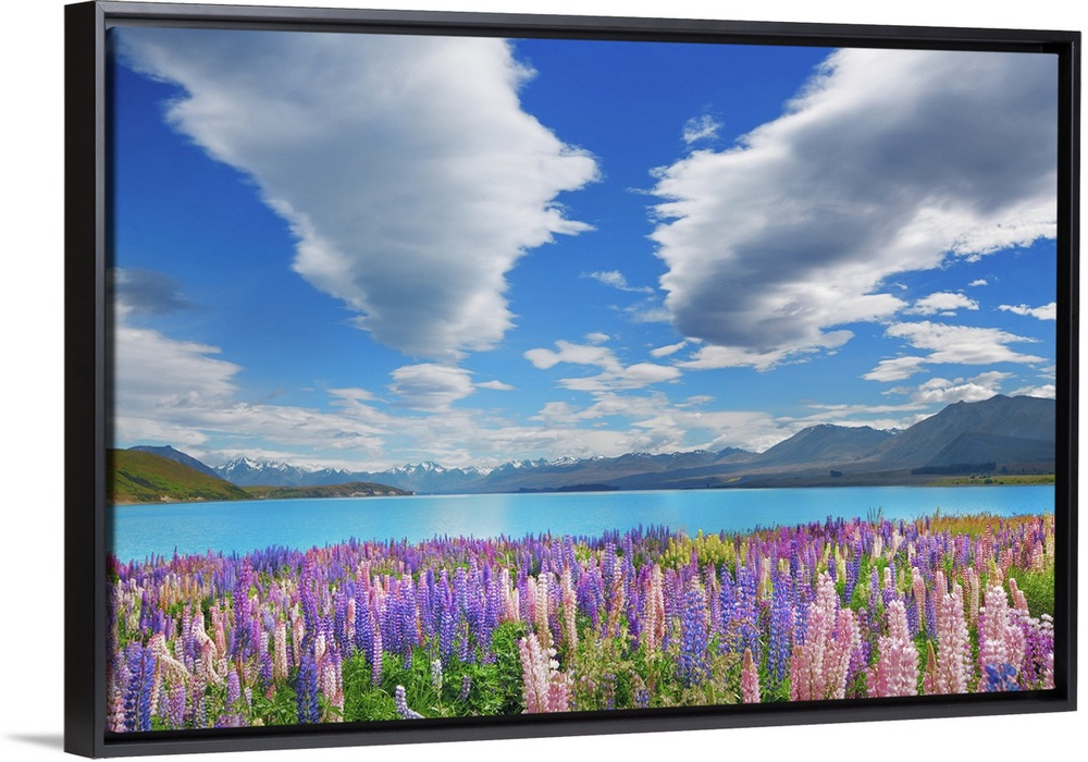 <p>Lupine meadow at Lake Tekapo. New Zealand, South Island, Canterbury, Mackenzie, Lake Tekapo, Lake Tekapo, Southern Alps. Canterbury, Australasia, New Zealand.</p>