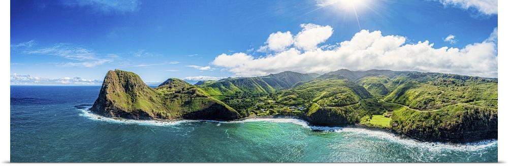 <p>Lush foliage on the north side of west Maui, with a view of the isolated picturesque community of Kahakuloa, Maui, Hawaii, united states of America.</p>