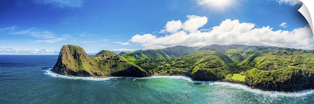 <p>Lush foliage on the north side of west Maui, with a view of the isolated picturesque community of Kahakuloa, Maui, Hawaii, united states of America.</p>