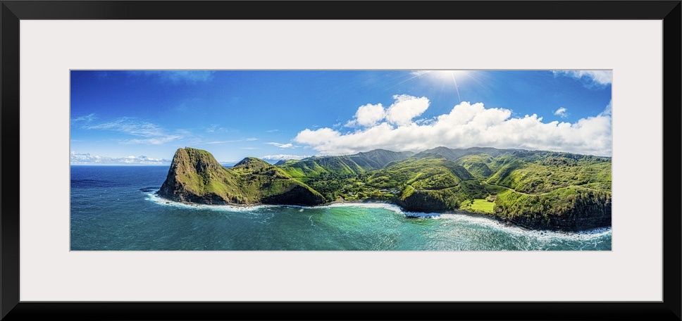 <p>Lush foliage on the north side of west Maui, with a view of the isolated picturesque community of Kahakuloa, Maui, Hawaii, united states of America.</p>