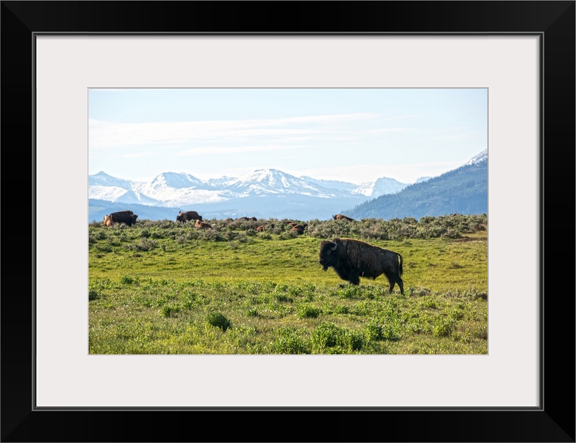 <p>Bison in a meadow at Yellowstone National Park.</p>