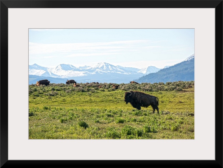 <p>Bison in a meadow at Yellowstone National Park.</p>