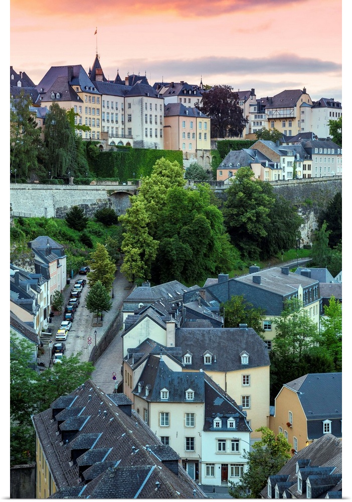 <p>Luxembourg, Luxembourg City, View over the Grund - the lower town towards The Corniche (Chemin de la Corniche).</p>