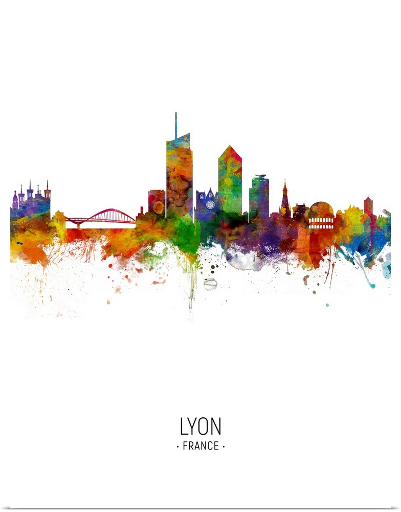 <p>Watercolor art print of the skyline of Lyon, France</p>