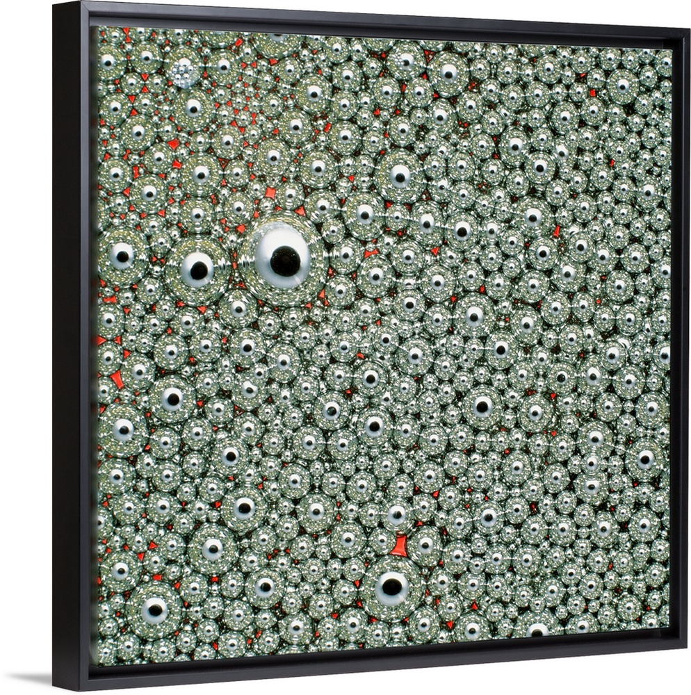 <p>Macrophotograph of small droplets of mercury, which are suspended in oil to prevent them from fusing together.</p>