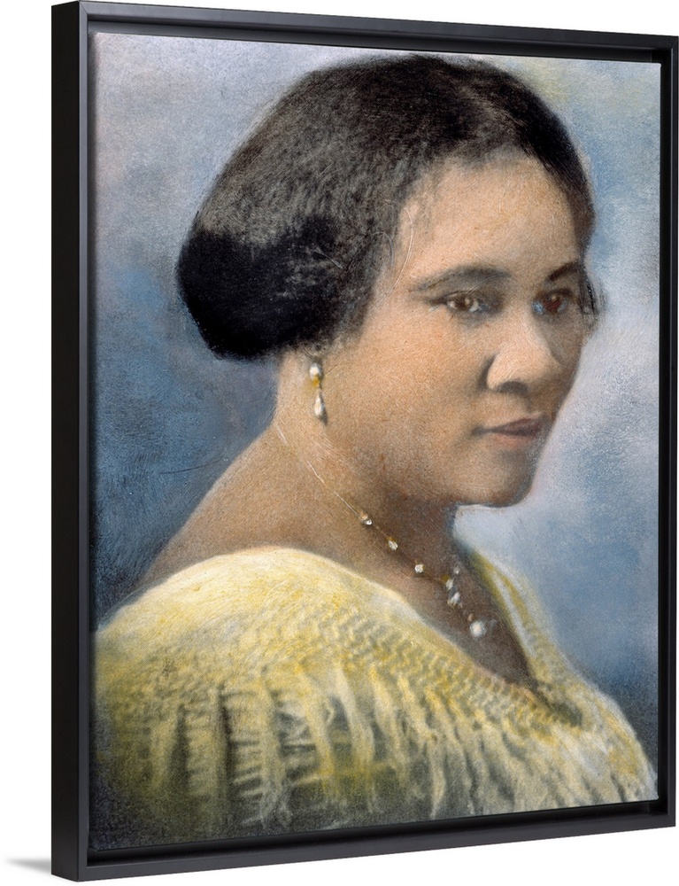 <p>MADAME C.J. WALKER (1867-1919). Sarah Breedlove. American businesswoman. Oil over a photograph, c1910.</p>