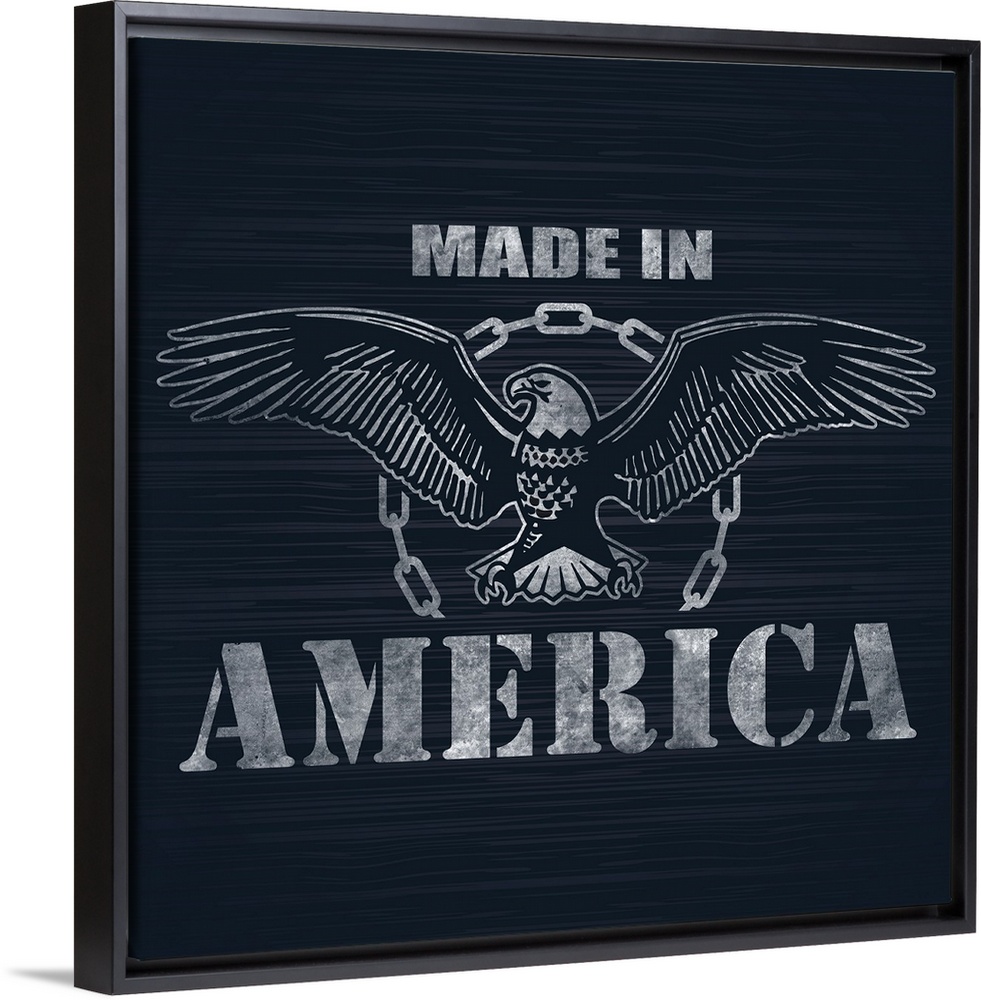 <p>"Made in America" with an illustration of an eagle on a dark blue background.</p>