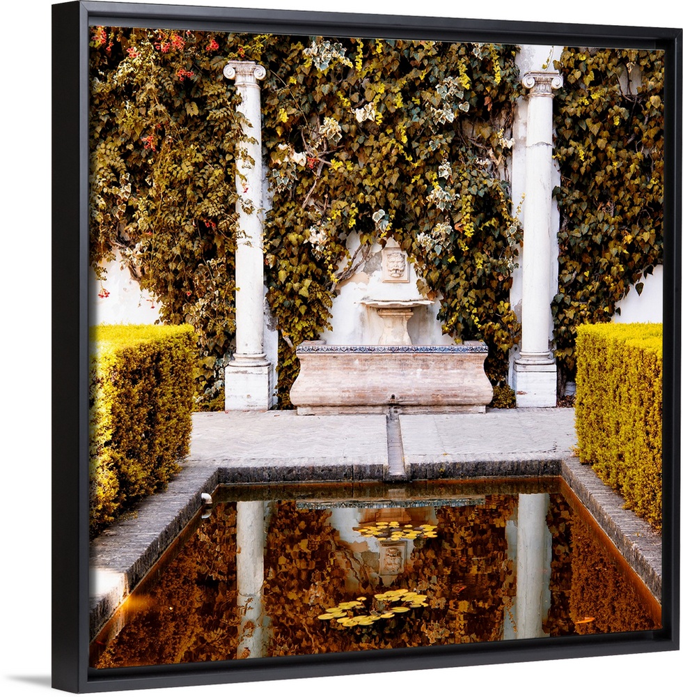 <p>It's an old fountain with fall colors in the Alcazar gardens in Seville, Spain.</p>